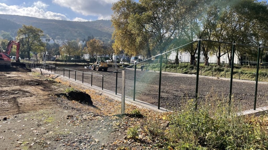 Seit Mai läuft der Bau der vorderen Tennisanlage, die insgesamt fünf tief liegende Einzelplätze und zwei großzügige Centercourts umfassen wird. Dank des bisher milden Herbstwetters können die Bauarbeiten planmäßig vorangehen. Noch vor Einbruch des Winters sollen die Ziegelmehldecken eingebaut und die stabilen Zaunanlagen fertiggestellt werden.