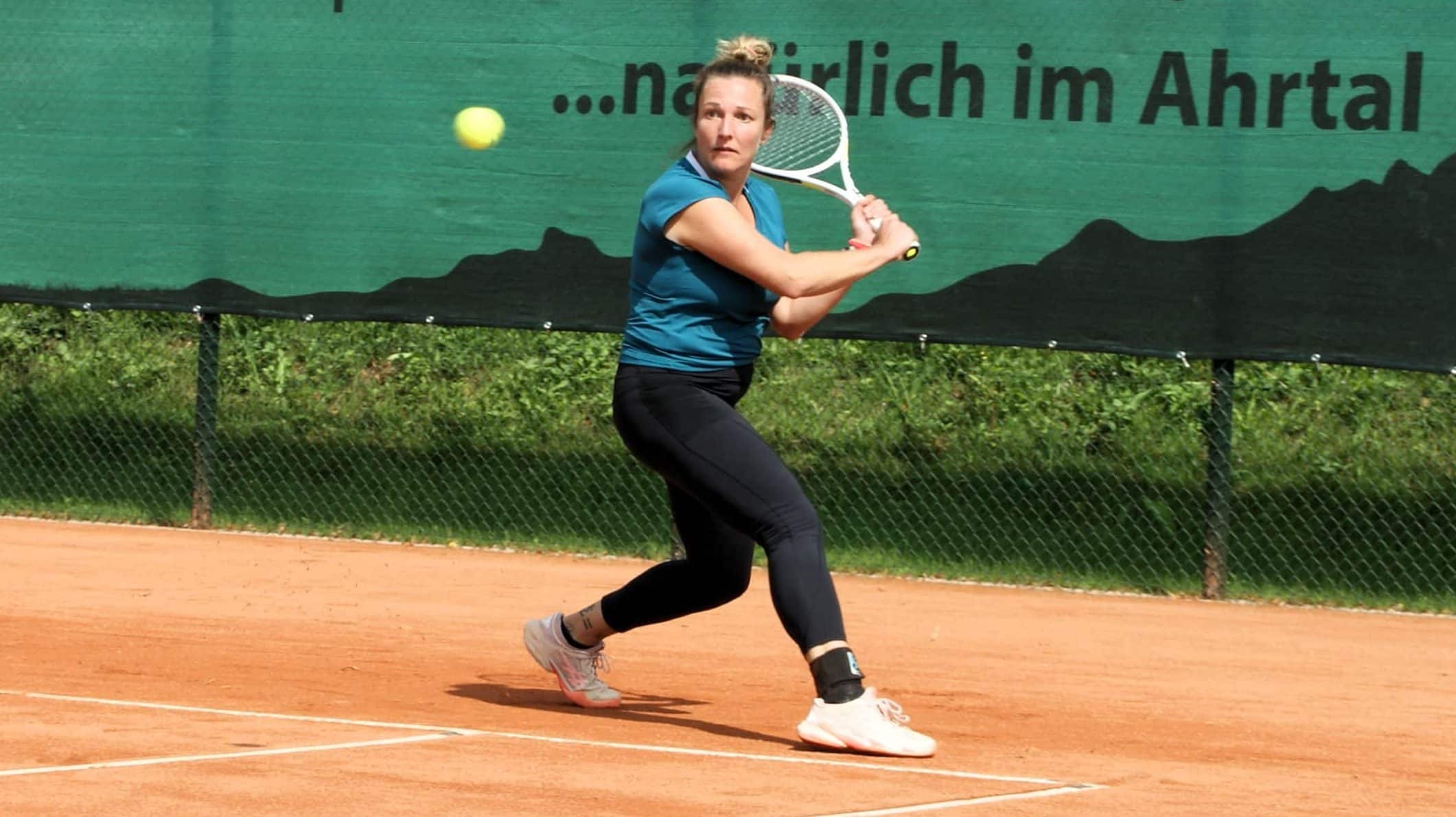 Nur scheinbar lief zunächst alles nach Plan für Monika Keller, die Nummer eins der Deutschen Rangliste. Sie siegte aber nur im ersten Satz – und das schon gar nicht im Schnelldurchgang mit 6:4. Katarina Rath fing sich – sehr zum Gefallen der rund 200 Zuschauer, die einen zweiten Satz erlebten, der sich zur einseitigen Angelegenheit entwickelte. Rath spielte hier entweder mit Slice hauchdünn über die Netzkante oder zog einfach schnörkellos wie kraftvoll zugleich zum Satzgewinn (6:2) durch. Es war dann mehr und mehr Katarina Rath, die im dritten Satz mit Spin und hart geschlagener Rück- und Vorhand ihrer Kontrahentin Keller Probleme bereitete und sie zu Fehlern zwang. Derweil fand Keller auf der anderen Seite nicht wieder zurück ins Spiel. Allemal agierte wesentlich schlagsicherer, traf nun seinerseits die Ecken, bevor die Frau vom RTHC Bayer Leverkusen zum 5:3 den Weg zum Titelgewinn freimachte. Ihren ersten Matchball versemmelte Katarina Rath noch bei eigenem Aufschlag mit einem Doppelfehler. Im alles entscheidenden Moment schaltete Katarina Rath beim zweiten Matchball einen Powergang nach oben und ließ Monika Keller ins Leere laufen.