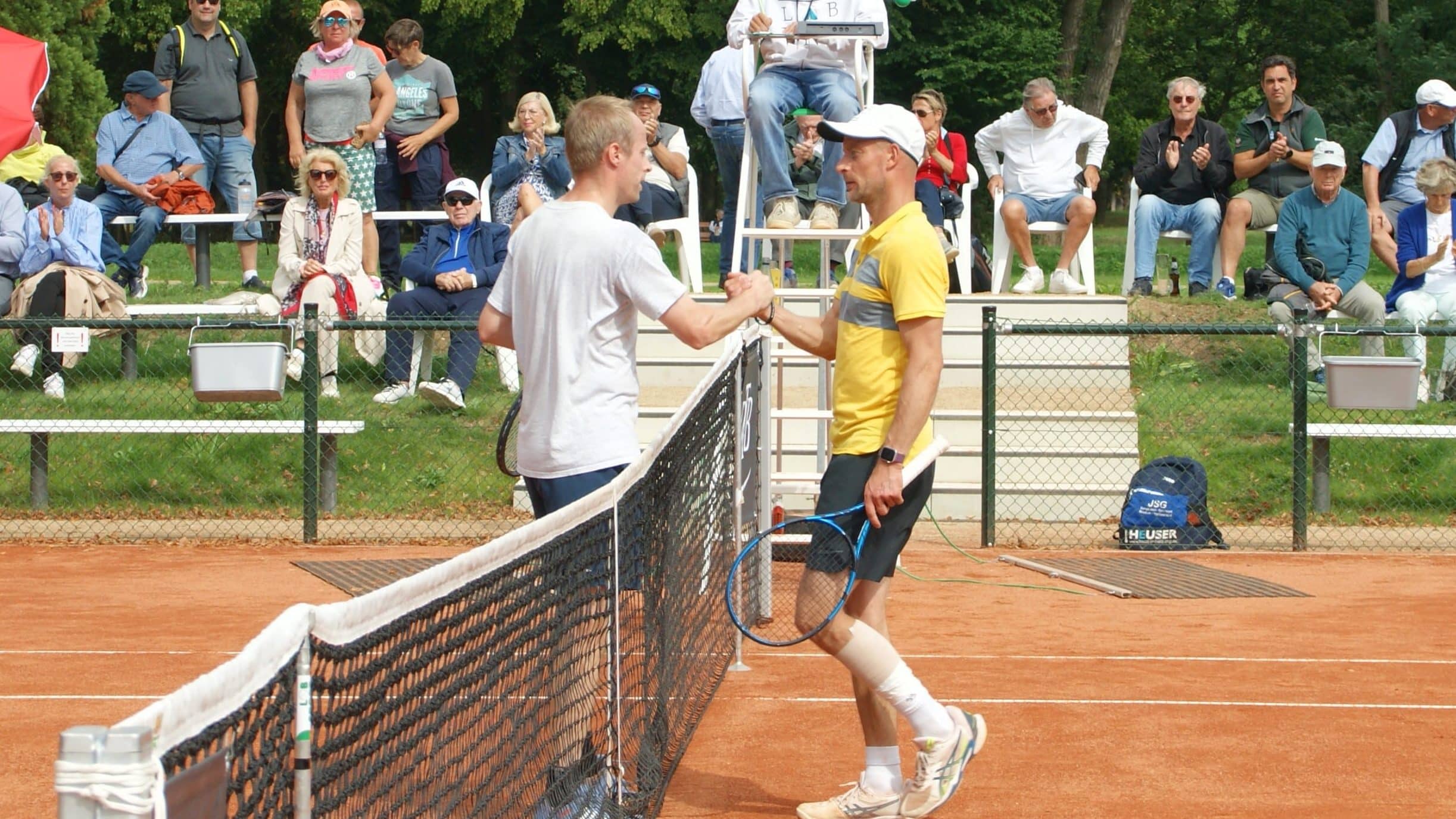 Das war’s jedoch noch nicht: Denn in dieser Szene verletzte sich Thivessen an der Wade. Der Physiotherapeut musste aufs Feld, um ihn zu bandagieren. Im zehnten Spiel fiel Thivessens ins Aufschlagloch – indes stabilisierte sich Burgemeister mehr und mehr. Mit einem Vorhandkracher gelang ihm das Break zum 5:4. In der Folge wogte das Match nur kurze Zeit hin und her. Die Entscheidungsphase um die Krone sorgt dann allemal auf den Rängen für Gänsehautatmosphäre. Denn Thivessen stemmte sich noch einmal mit aller Macht gegen die drohende Niederlage. Unterdessen blieb Burgemeister unbeeindruckt und verwandelte seinen Matchball zum 6:4.